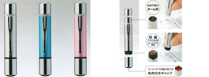 | コンパクトなボディに、浸透ネーム印と浸透訂正印がついたアクセサリー印です。ビジネスや家庭にも重宝されます。 |