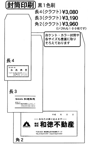 封筒印刷(長3 1色刷り) 100枚 (クラフト) 3,190円 |