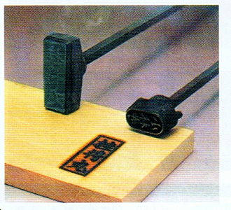 | 【焼印】金属に彫刻し、熱して、木・皮などに烙印します。1.5mm角から出来ます。電熱式もあります。 |